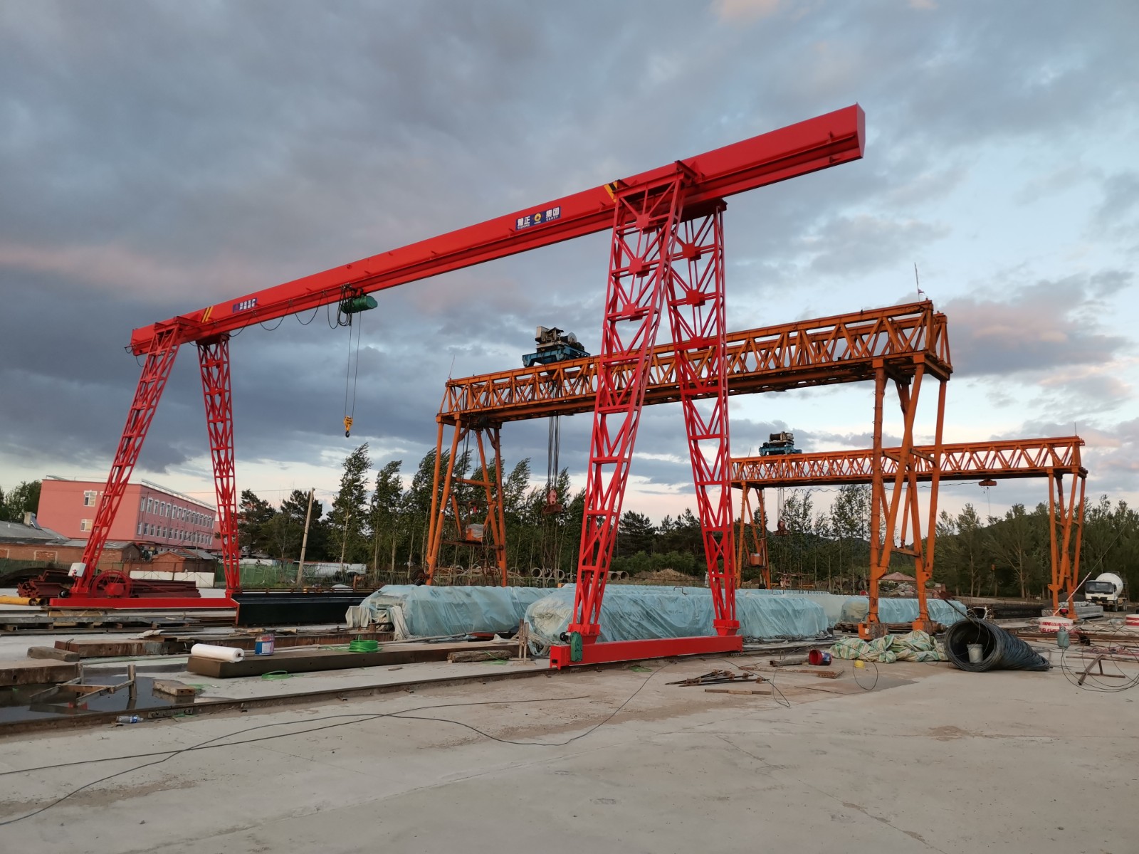 它的金屬結構像門形框架,承載主梁下安裝兩條支腳,可以直接在地面的軌道上行走,主梁兩端可以具有外伸懸臂梁。