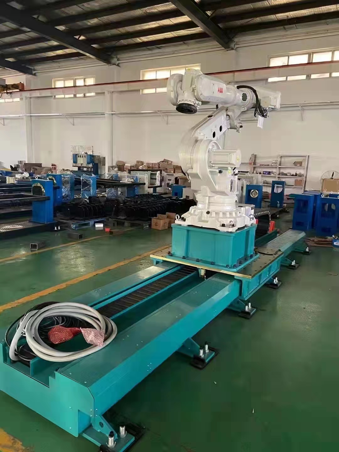 工業(yè)自動化中,工業(yè)機(jī)器人逐漸被應(yīng)用于生產(chǎn)的各個(gè)環(huán)節(jié),替代人工作業(yè),促進(jìn)了自動化生產(chǎn)的進(jìn)程。而機(jī)器人地軌作為機(jī)器人的一個(gè)行走輔助機(jī)構(gòu),也快速發(fā)展起來,在一些空間復(fù)雜、工件大的場合應(yīng)用廣泛。機(jī)器人地軌主要是帶動工業(yè)機(jī)器人按指定路線進(jìn)行移動,擴(kuò)大機(jī)器人作業(yè)半徑,擴(kuò)展機(jī)器人使用范圍功能,進(jìn)一步提高機(jī)器人使用效率,降低機(jī)器人使用成本,實(shí)現(xiàn)全面自動化生產(chǎn)。地軌作為執(zhí)行機(jī)構(gòu),具有控制方便、執(zhí)行動作靈活、可實(shí)現(xiàn)復(fù)雜的空間軌跡控制的特點(diǎn),如下是機(jī)器人地軌的系統(tǒng)功能——1,系統(tǒng)程序控制:地軌系統(tǒng)與“模架”的信號接口及系統(tǒng)接口全部都是采用數(shù)字信號傳輸,從而保證互相之間的穩(wěn)定性及牢靠性。具備手動和自動兩種運(yùn)轉(zhuǎn)控制方式,手動方式下可單獨(dú)操作某一個(gè)工位,自動方式下按設(shè)定的運(yùn)轉(zhuǎn)程序自動運(yùn)轉(zhuǎn)。