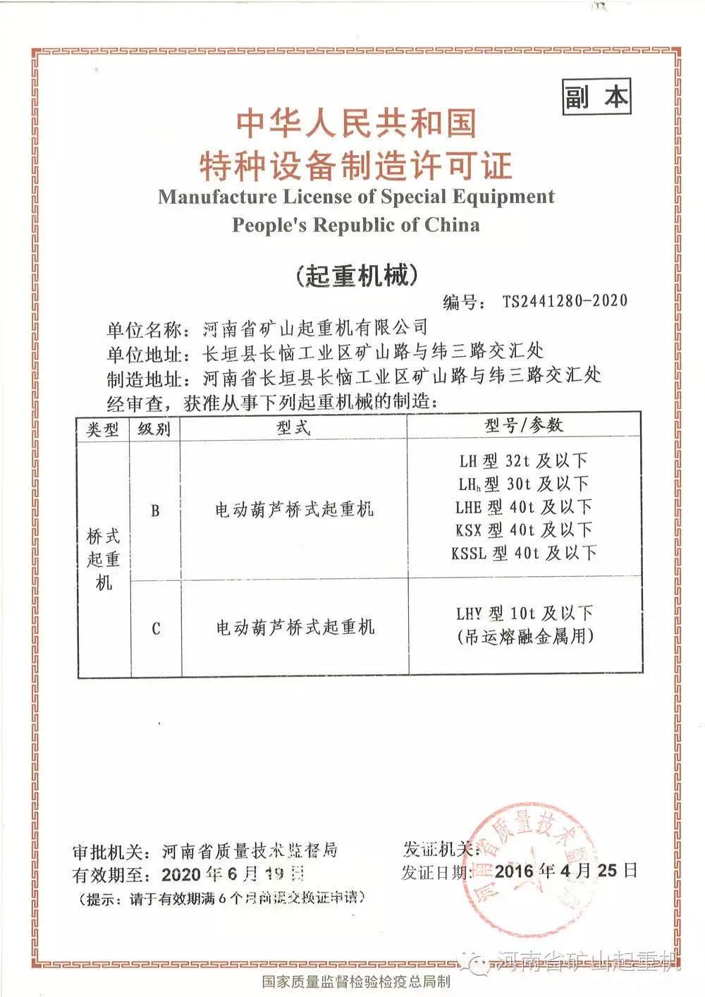 » 中華人民共和國特種設備制造許可證