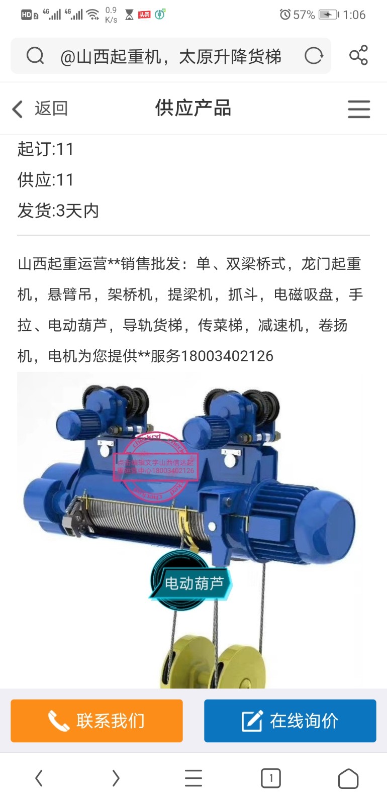 聯(lián)系我時(shí),請(qǐng)告知來自全球起重機(jī)械網(wǎng),將會(huì)給你95折優(yōu)惠,謝謝!