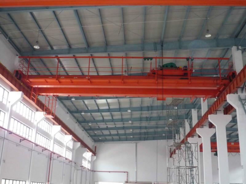 “橋式起重機是橫架于車間、倉庫和料場上空進行物料吊運的起重設備。由于它的兩端坐落在高大的水泥柱或者金屬支架上,形狀似橋。橋式起重機的橋架沿鋪設在兩側高架上的軌道縱向運行,可以充分利用橋架下面的空間吊運物料,不受地面設備的阻礙。它是使用范圍**廣、數量**多的一種起重機械。