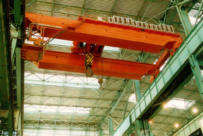 橋式起重機,是一種類型的起重機在工業環境中。高架起重機由平行的跑道組成,行進橋橫跨該間隙。一個葫蘆,起重機的起重部件,沿著橋行駛。如果橋在地面上固定在固定導軌上的兩個或多個支腿上受到剛性支撐,則該起重機稱為龍門起重機或巨人起重機。
