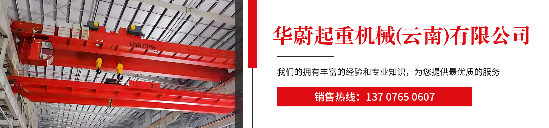 銷售熱線:楊經(jīng)理13707650607華蔚起重機(jī)械(云南)有限公司,公司主營:云南起重機(jī),壩頂門機(jī)啟閉機(jī).卷揚(yáng)機(jī).電機(jī).減速機(jī).吊鉤、銅絲繩、抓斗、遙控器、起重機(jī)、龍門吊、天車、天吊、行車、架橋機(jī)、提梁機(jī)、升降貨梯、升降平臺、起重設(shè)備、單梁起重機(jī)、雙梁起重機(jī)、歐式起重機(jī)、門座式起重機(jī)、門式起重機(jī)、工程起重機(jī)、電動(dòng)葫蘆、電動(dòng)葫蘆配件、門式起重機(jī)配件、電動(dòng)單梁起重機(jī)配件、雙梁橋式起重機(jī)配件、環(huán)鏈電動(dòng)葫蘆、導(dǎo)軌式液壓升降機(jī)、電動(dòng)平車、歐式電動(dòng)葫蘆、懸臂起重機(jī)、KBK輕柔型起重機(jī)、液壓升降平臺、升降搬運(yùn)設(shè)備、小型起重機(jī)械、起重配套工具等起重配件。本公司專業(yè)銷售、安裝、改造、維修保養(yǎng)各種單、雙梁起重機(jī)、電動(dòng)葫蘆等起重設(shè)備,并配備各種型號起重配件。承接起重機(jī)的設(shè)計(jì)、制造、安裝、維修、保養(yǎng)、拆遷、改造、搬遷、現(xiàn)場制作、年審、質(zhì)檢....價(jià)格優(yōu)廉。