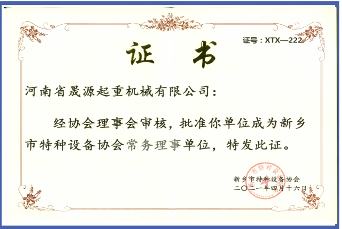 » 河南省晟源起重機械有限公司證書