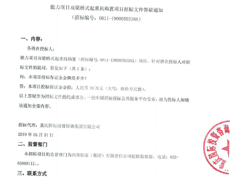 移動版:能力項目雙梁橋式起重機購置項目招標文件答疑通知
