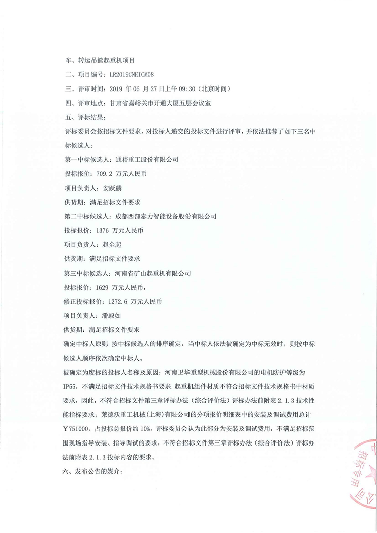 中核龍瑞科技有限公司乏燃料后處理工業示范廠預處理設施熱室數控吊車、轉運吊籃起重機項目招標結果公示(重評)