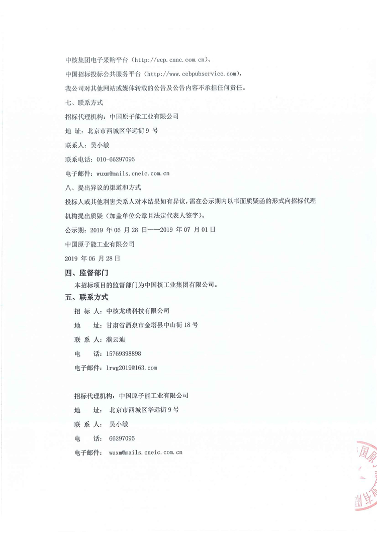 移動版:中核龍瑞科技有限公司乏燃料后處理工業示范廠預處理設施熱室數控吊車、轉運吊籃起重機項目招標結果公示(重評)