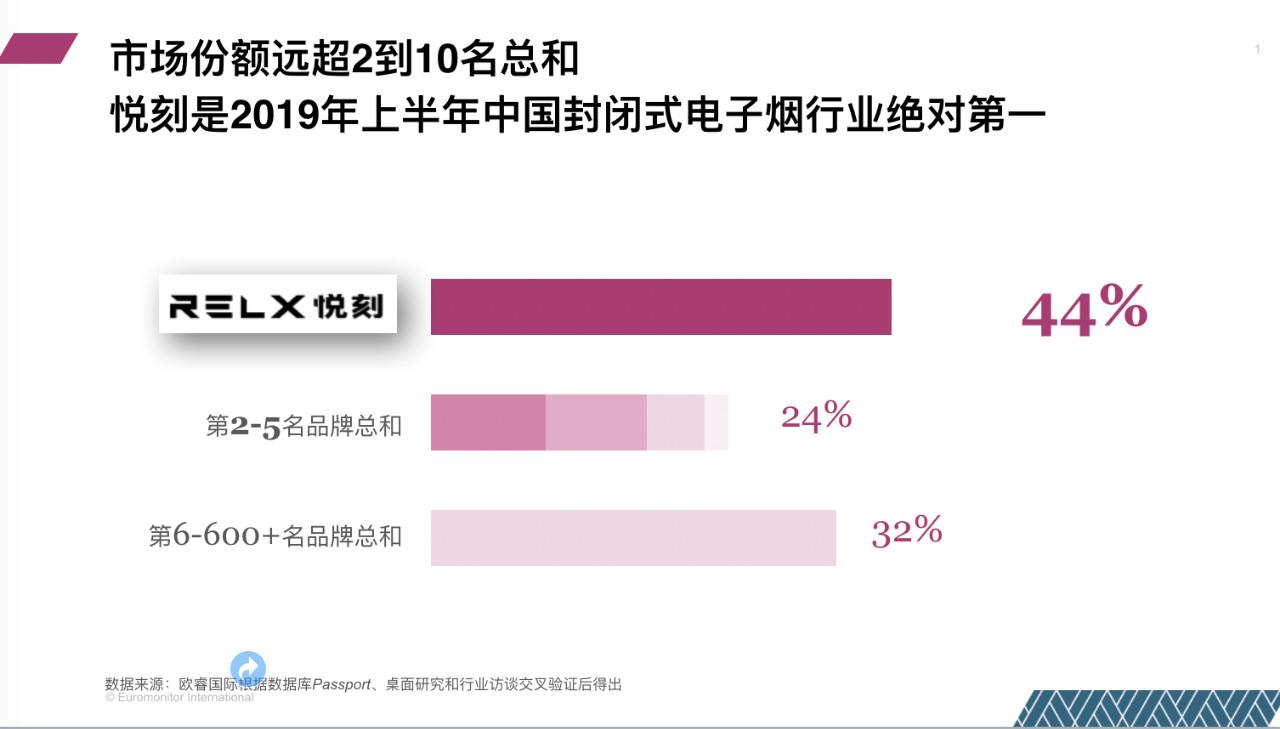 樂(lè)收生意寶訊:成為服務(wù)全球用戶的知名品牌,一直是很多創(chuàng)業(yè)公司的愿景和目標(biāo)。從蘋果、華為、GE和寶潔,到阿里巴巴和騰訊,都成為了全球知名的品牌。目前,在炙手可熱的電子煙行業(yè)中,已走出一個(gè)蜚聲全球的品牌RELX悅刻。歐睿國(guó)際數(shù)據(jù)顯示,RELX悅刻在中國(guó)封閉式電子煙行業(yè)市場(chǎng)占有率高達(dá)44%,遠(yuǎn)超2-10名的總和,成為當(dāng)之無(wú)愧的中國(guó)電子煙第一品牌。
