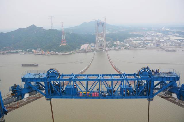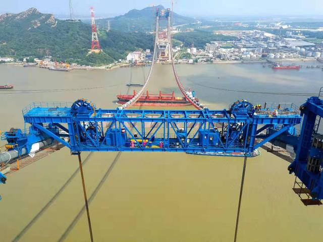 9月16日晚6時,鎮江五峰山長江大橋南北兩岸四臺纜載起重機全部吊裝完成。至此,標志著鎮江五峰山長江大橋,即將進入中跨鋼梁架設階段。