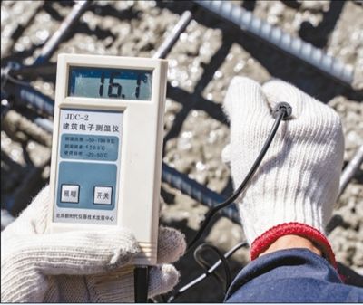 5月9日,中鐵十一局拉林鐵路朗縣制梁場的制梁施工現場,澆筑混凝土測溫工作正在進行?!≡?泉 崔金鳳攝影報道
