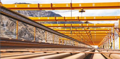 4月23日,拉林鐵路今年復工以來的首列長鋼軌進入協榮鋪架基地。  袁 泉 丁慶濱攝影報道