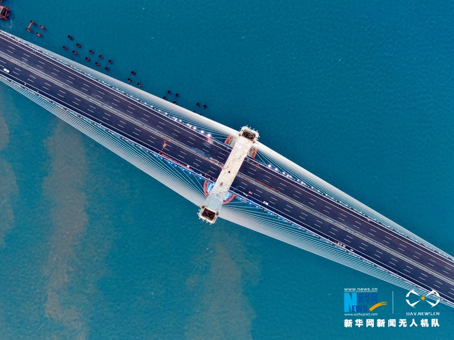 大橋像豎琴展開在海面上。新華網發(胡鵬 攝)