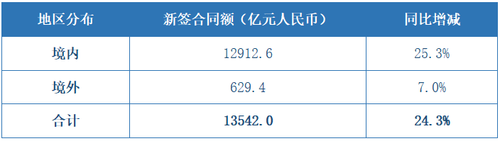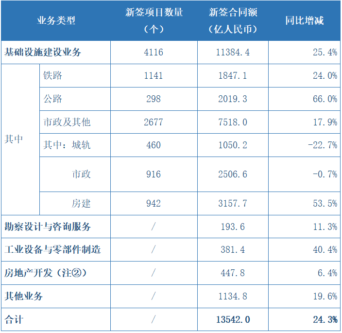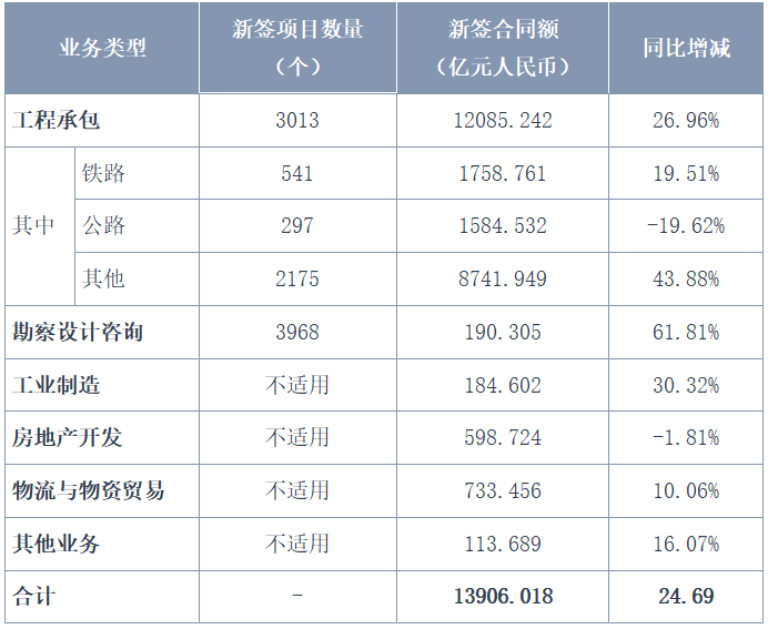 2020年前三季度,中國鐵建新簽合同額13,906.018億元人民幣,同比增長24.69%。