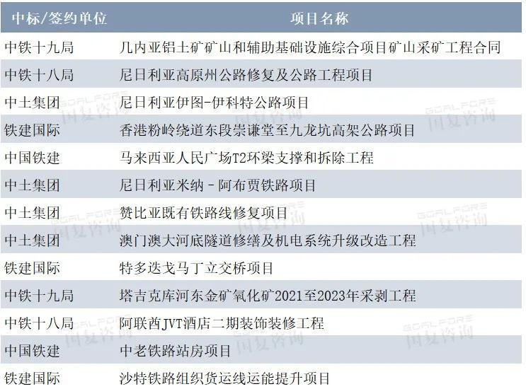 海外中標(biāo)/新簽重點項目