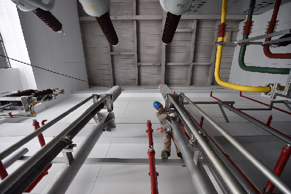 10月26日,天津送變電工程有限公司工作人員在進行壓力檢查。