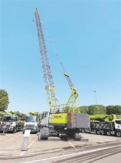 中聯(lián)重科麓谷工業(yè)園內(nèi)供客戶參觀的一臺(tái)履帶式起重機(jī)成品