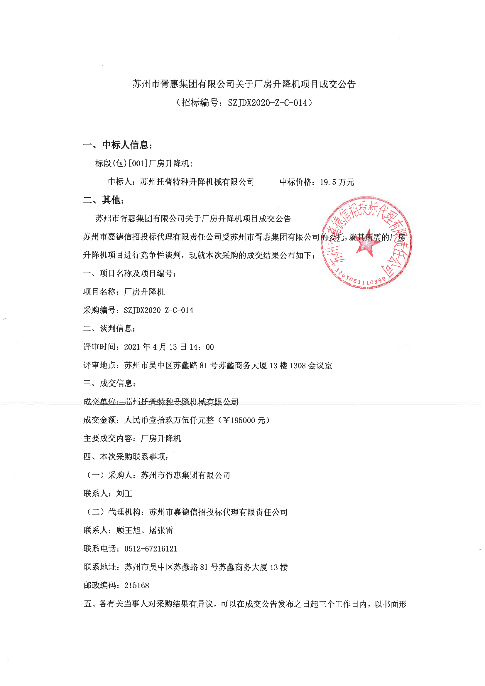 移動(dòng)版:江蘇:蘇州市胥惠集團(tuán)有限公司關(guān)于廠房升降機(jī)項(xiàng)目成交公告