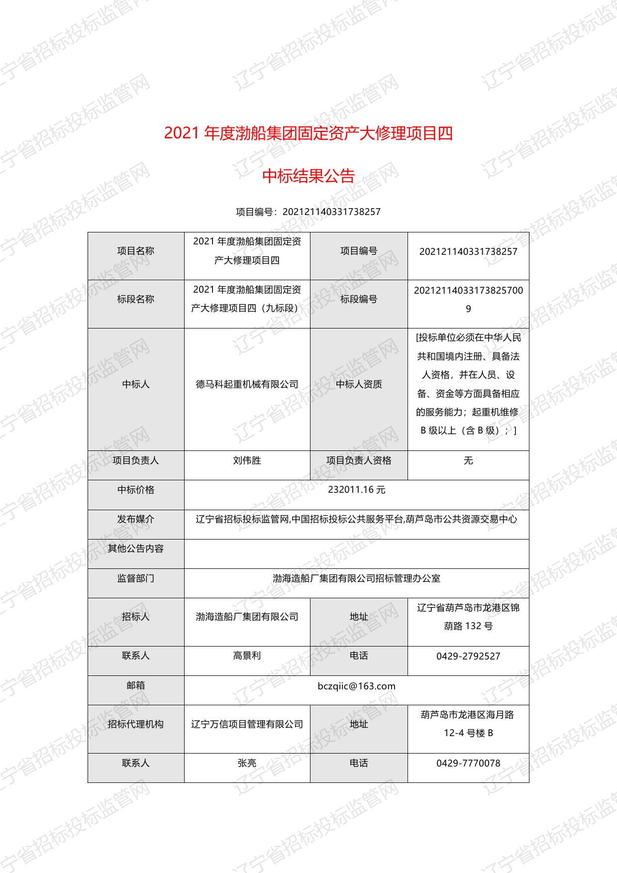 移動版:遼寧:2021年度渤船集團固定資產大修理項目四中標結果公告