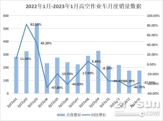據(jù)我國工程機(jī)械工業(yè)協(xié)會對9家高空作業(yè)車制作企業(yè)計算,2023年1月當(dāng)月出售各類高空作業(yè)車177臺,同比下降37.5%。